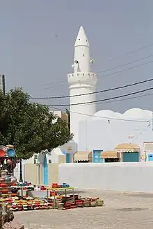 Il s'agit d'une mosquée de taille moyenne et d'une architecture sobre de murs blancs, caractérisée par son minaret original et unique dans son genre sur toute l'île.