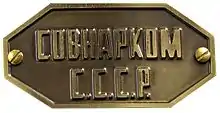 - Sovnarkom (Совнарком formé de russe : Совет народных комиссаров Советского Союза translittéré Soviet Narodnykh Kommissarov Soviétskovo Soïoúza soit « Conseil des commissaires du peuple de l'Union soviétique »