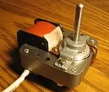 Le moteur à bague de démarrage est formé d'un rotor à cage d'écureuil, d'une bobine et d'un stator ferromagnétique. La construction la plus commune est le stator en « C » visible sur la photo.