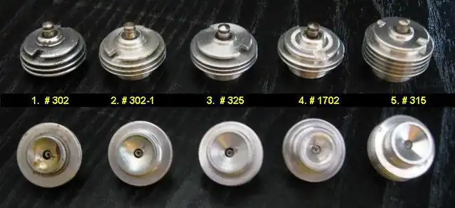 Le n°4 est un cylindre d'avant 1955 avec une paroi fine, utilisé dans le Space Bug, le Space Bug Jr, le Thermal Hopper et le Strato Bug. Notez le diamètre du filetage de la bougie qui est plus petit que les modèles plus récents.