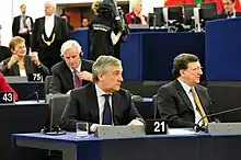 La Commission, en tant que collège, est responsable devant le Parlement européen. Le Parlement européen peut adopter une motion de censure de la Commission. Si une telle motion est adoptée, les membres de la Commission doivent démissionner collectivement de leurs fonctions et le haut représentant de l'Union pour les affaires étrangères et la politique de sécurité doit démissionner des fonctions qu’il exerce au sein de la Commission[4].