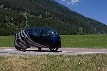 Peraves Ecomobile, avec roues stabilisatrices déployées.