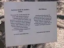 - Le moulin disposait d'une roue à godets qui mesurait 5.18 mètres (17 pieds) de diamètre. L'entrée de la dalle est toujours visible en façade. Le moulin comptait trois moulanges (paires de meules).