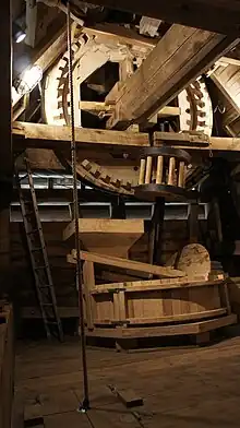 Le Moulin de Valmy est un moulin sur pivot. Il possède quatre ailes portées sur un arbre en bois. Il y a deux paires de meules, disposées de part et d'autre de l'axe. Le tréteau a la particularité d'avoir trois arbres transversaux (au lieu des deux habituels) et donc six paires de d'appuis doublés[3].