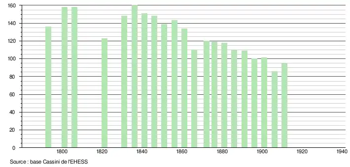 Jusqu'en 1923, la démographie de Moussy-sur-Aisne était :