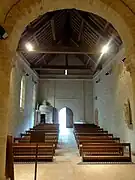 Ses deux croisillons sont munis de petites absidioles. Le voûtement fait appel aux trois principales techniques qui ont cours à l'époque romane : la voûte d'arêtes pour la croisée du transept ; la voûte en berceau pour les croisillons et les absidioles ; et la voûte en cul-de-four pour l'abside.