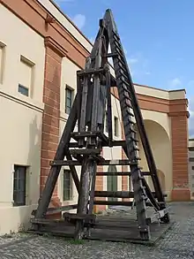 Avant l'invention de la machine à vapeur, la remontée du mouton se faisait généralement à la force humaine.
