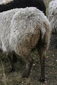 - mouton Gotland, à toison habituellement grise et sans corne. Cette race est issue de croisements dans les années 1920 de moutons originaires du Gotland (appelés gutefår) avec des brebis romanov (pour la prolificité) et karakul pour le pelage[11]. Élevés au Danemark, en Allemagne, au Royaume-Uni et aux États-Unis[2].