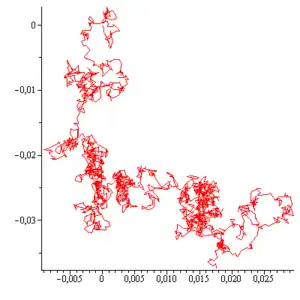 Le mouvement brownien, ou processus de Wiener, est une description mathématique du mouvement aléatoire d'une « grosse » particule immergée dans un liquide et qui n'est soumise à aucune autre interaction que des chocs avec les « petites » molécules du fluide environnant. Il en résulte un mouvement très irrégulier de la grosse particule, qui a été décrit pour la première fois en 1827 par le botaniste Robert Brown en observant les mouvements spontanés de grains de pollen de Clarkia pulchella en suspension, puis de diverses autres plantes[1].