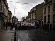 - des dégradations lors des manifestations (vitrines, voitures…), parfois avec des justifications à caractère politique (vitrines d'agences d'intérim, de banques…), et parfois causées en marge des manifestations par des jeunes venus avec la volonté de se battre avec les forces de l'ordre,