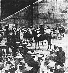La police japonaise réprime la foule qui tente d'organiser une manifestation pour l'indépendance nationale.