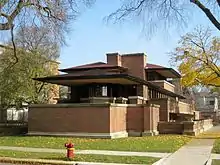 Les premières maisons sont modestes, puis la réputation venant, Wright construit pour les plus nantis. En 1902-1904, la Dana House à Springfield dans l'Illinois comprend l'habitation principale, un salon de musique, une galerie-serre et une forme de sanctuaire familial fait des vestiges de la maison précédente. À Buffalo dans l'État de New York, la Martin House de 1904 intègre toutes les caractéristiques d'un domaine de grand luxe avec maisons principales et d'amis, écuries, jardin d'hiver, pergola, espaces verts. En 1908, la Coonley House à Riverside est une propriété fastueuse où Wright montre qu'il peut dilater son vocabulaire sans perdre de sa cohérence. Jusqu'en 1910, il construit de nombreuses maisons d'habitation familiales dont la Robie House de 1908-1910 qui exprime clairement l'esprit des Prairies Houses, un important immeuble de bureaux, le Larking Building à Buffalo, et une église[9]..
