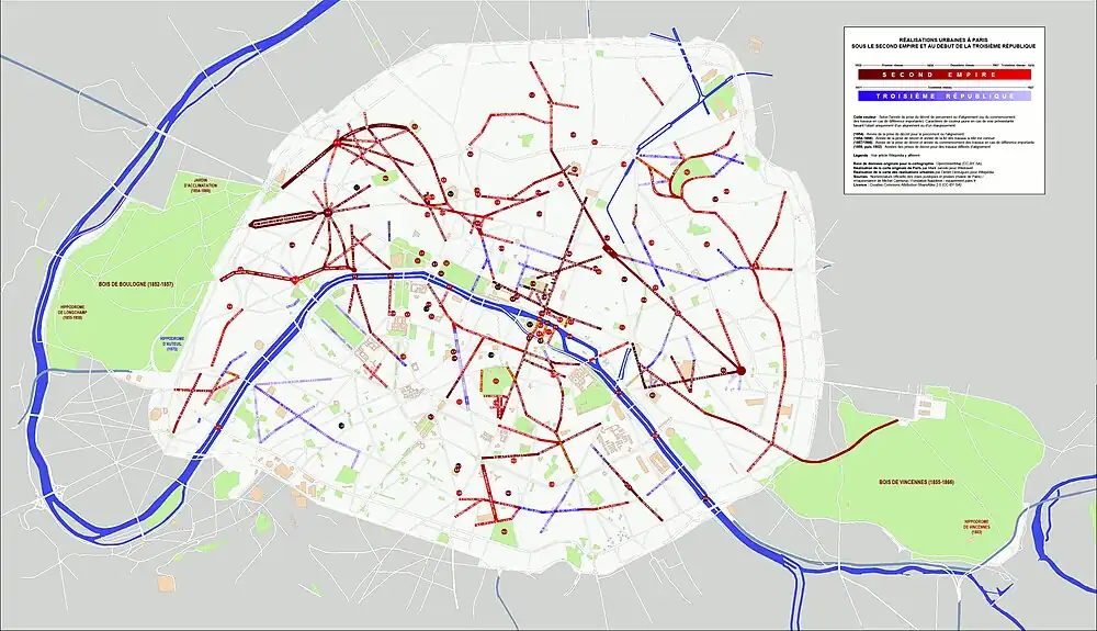 Avec les transformations de Paris sous le Second Empire par le Baron Georges Eugène Haussmann, le plan régulateur d'une ville moderne est posé pour la première fois à l'échelle du modèle économique avec un ensemble cohérent de dispositions techniques et administratives étendues à une ville de plus d'un million d'habitants. Les architectes y jouent un rôle mineur sans sortir du cadre des discussions habituelles sur les styles néo-classique ou néo-gothique, puis l'éclectisme, avec la connaissance des autres pays, est favorisé par les premières histoires universelles de l'architecture comme celle de Jules Gailhabaud[3].