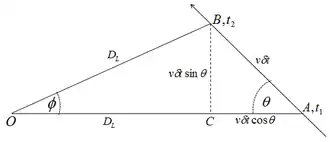 Si est la vitesse de la lumière et que le décalage entre les deux émissions est noté , nous avons :