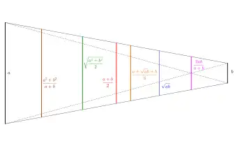 En outre, ces moyennes sont toujours ordonnées par les inégalités suivantes qui prolongent l’inégalité arithmético-géométrique :