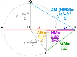 En mathématiques, les trois moyennes pythagoriciennes sont la moyenne arithmétique (A), la moyenne géométrique (G) et la moyenne harmonique (H). Ces moyennes ont été étudiées avec proportions par les Pythagoriciens et des générations suivantes de mathématiciens grecs[1] de par leur importance en géométrie et en musique.