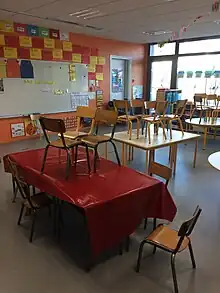 L'école maternelle est obligatoire depuis septembre 2019. La classe de moyenne est composée de 25 à 30 élèves avec un enseignant aidé par une ATSEM (à temps plein ou sur certains créneaux en fonction des écoles) en école publique et par une ASEM (agents spécialisés des écoles maternelles) en école privée. Au sein des petites écoles, l'enfant peut être amené à être dans une classe ayant plusieurs niveaux.