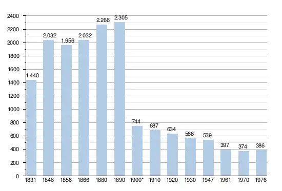 - Source: DGS, 1831 à 1970=recensements population, 1976= habitants au 31 décembre