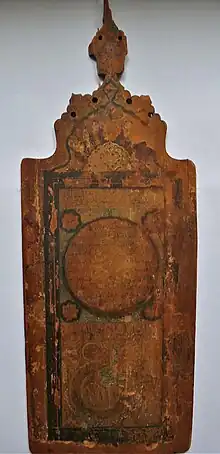 Les plus anciennes données matérielles qui mentionnent « Muḥammad » remontent à une cinquantaine d'années après la mort de Mahomet[42] : en 685 (an 66 de l'hégire) sur une drachme arabo-sassanide, en 691 (71 AH) sur une pierre tombale égyptienne et en 692 (72 AH) sur une inscription figurant sur le dôme du Rocher de Jérusalem[43]. Selon Volker Popp, en comparaison d'autres pièces similaires portant ces lettres et des représentations chrétiennes, le terme Mhmd de la pièce de monnaie arabo-sassanide ne désigne pas Mahomet mais se traduit par « le béni », terme utilisé pour désigner Jésus[44]. Cette thèse est reprise par Karl-Heinz Ohlig[45],[Note 14]. De même, certaines inscriptions du dôme du Rocher seraient issues de la phrase biblique : « Béni soit celui qui vient au nom du Seigneur », le béni signifiant Jésus[46].