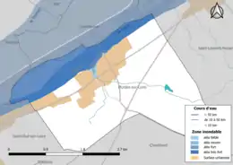 En Loir-et-Cher, les crues de la Loire représentent des volumes d'eau et des débits quatre à cinq fois supérieurs à ceux du Cher et du Loir : la superficie des zones et l'ampleur des dégâts peuvent être considérables. Les crues historiques sont celles de 1846 (6,60 m à l'échelle de Blois), 1856 (6,78 m), 1866 (6,70 m), 1907 (5,63 m) et 2003 (3,78 m). Le débit maximal historique est de 5 100 m3/s (crue de 1846) et caractérise une crue de retour centennal[42]. Le risque d'inondation est pris en compte dans l'aménagement du territoire de la commune par le biais du Plan de prévention du risque inondation (PPRI) de la Loire amont[43].
