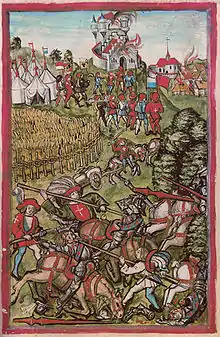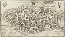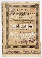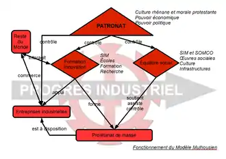 Fondée selon la légende autour d'un moulin à eau, Mulhouse fut longtemps une cité-État qui devint en 1347 la République de Mulhouse (Stadtrepublik Mülhausen)[15]. À coups d'alliances, elle affirma son indépendance à l'égard du Saint-Empire à la fin du XVe siècle, puis adopta les idées de la Réforme protestante par l'instauration du calvinisme comme religion d'État. Propulsée dans l'aventure industrielle en 1746 et réunie à la France en 1798[16], elle devint un des premiers pôles industriels d'Europe et fut longtemps surnommée le « Manchester français »[17]. En 1812, la filature dite « vieux DMC » est construite[18] et fut longtemps un des symboles de la Révolution industrielle en Europe[19],[20], avant sa démolition en 2013[21]. En 1904, c'est le Nord de l'agglomération qui se lança dans l'exploitation minière. Cet important passé industriel forgea l'identité de la cité. Du fait de la présence de l'industrie spatiale, Mulhouse est membre de la communauté des villes Ariane.