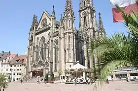 La ville est labellisée ville d'art et d'histoire[28]. Mulhouse a vu naître et grandir le capitaine Alfred Dreyfus[29], dont l'affaire coupa en deux la France entière. C'est aussi la ville natale du grand mathématicien Jean-Henri Lambert[30], du cinéaste William Wyler qui marqua l'âge d'or d'Hollywood[31] et d'Alfred Werner, prix Nobel de chimie en 1913[32]. Enfin, les volcanologues Katia et Maurice Krafft[33] furent également des Mulhousiens de renom. Terre de la Réforme[34], Mulhouse accueille en son cœur le temple Saint-Étienne qui est l'édifice protestant le plus haut de France[35]. La ville est souvent surnommée la « cité du Bollwerk »[36], qui signifie bastion en allemand. Il reste en effet un bastion, épargné lors de la suppression des fortifications de la ville au début du XIXe siècle. Il en est devenu un des symboles.