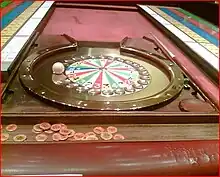 Le banquier tire la boule de billard vers le tambour qui contient le plateau des couleurs en réalisant nécessairement une bande. La couleur ou s'arrête la boule détermine les gains. Le croupier annonce la couleur et le multiplicateur, par exemple « rouge, trois fois la mise ». Si nécessaire il demande un arrosage dont il annonce le montant, reçoit les jetons qu'il commande et paye l'impôt. Ensuite il entame les paiements à voix haute en annonçant le numéro du joueur et son gain. Le paiement tient compte de la mise du joueur qui doit lui être rendue, pour ce faire il paye une fois de plus la mise que le multiplicateur du plateau. Dans notre cas le joueur qui a placé 2 euros sur le rouge se verra payer 8 euros, soit trois fois la mise plus sa mise.