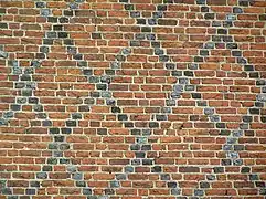 Un mur qui n'est pas entièrement aligné mais comporte des renfoncements en creux à certains endroits fournit pour son ornement architectural des niches à statues, des renfoncements pour arcatures.