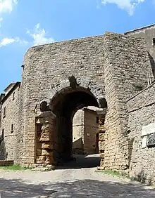 - La Porta all'Arco est la seule porte étrusque conservée incluse dans le tracé médiéval. Les jambages sont constitués de blocs de grès appelé localement panchino et ne peuvent être datés que du IVe siècle av. J.-C. L'arc et les têtes ont été construits plus tard, à l'époque romaine, probablement entre les IIIe et IIe siècles av. J.-C.