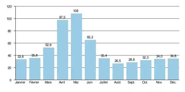 La lame d'eau écoulée dans cette partie du bassin, de loin la plus importante du point de vue de l'écoulement, atteint ainsi le chiffre de 44,3 millimètres par an, ce qui est très appréciable dans cette région particulièrement desséchée.