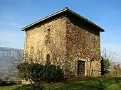 De plan approximativement carré, neuf mètres par dix mètres trente - la tour est bâtie sur un terrain pentu et s'élève sur deux niveaux côté montagne, tandis qu'un rez-de-chaussée s'ajoute côté vallée. Elle comptait il y a vingt ans encore un étage supplémentaire, comme le montre une vieille photo, mais la couleur différente et les parois plus minces laissent penser à une surélévation postérieure. Les murs, dont l'épaisseur à la base est d'environ un mètre, se composent d'un appareil irrégulier et non taillé, de dimension moyenne. Sur les deux faces non protégées de la tour, complétant le dispositif de défense, s'ouvraient des meurtrières : deux au nord-est, sur la partie supérieure du mur, simples fentes non appareillées d'environ dix centimètres de large sur soixante dix centimètres de haut, et deux au sud-est, plus grandes, dont l’ébrasement est encore visible de l'intérieur. Au premier étage, côté vallée, se trouve une petite fenêtre aujourd'hui bouchée, encadrée de briques et d'aspect ancien avec son arc plein cintre. Au premier étage encore, mais sur la face sud-ouest et contre un angle de la tour, se distingue une petite porte rectangulaire murée encadrée d'arrachements de murs, éléments probables d'une latrine. Le bâtiment fut largement réutilisé jusqu'à nos jours - habitation, grange - et subit un certain nombre de modifications. De vastes baies, cernées de briques furent percées au XIXe siècle. À l’intérieur, le rez-de-chaussée fut couvert d'une voûte en briques de forme surbaissée dont la calotte vient visiblement doubler les murs.