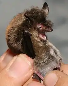 Petite espèce. Pelage relativement long, base des poils brun foncé cendré, dos brun clair avec reflets dorés. Oreilles, museau et membranes alaires brun moyen à brun clair.