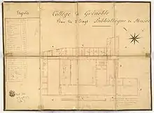 - Aux archives municipales de Grenoble, un plan daté du 10 mai 1844 établi par l'architecte départemental Voyer représente la surélévation du bâtiment, cote 2FI325.