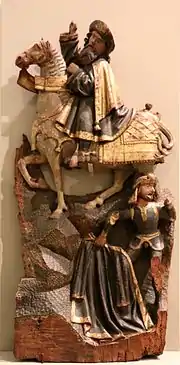 - Anonyme, Saint Michel terrassant le dragon, bois de tilleul polychrome et doré.
