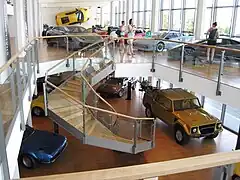 Le rez-de-chaussée est consacré aux véhicules historiques et le niveau supérieur expose des modèles récents, une série de concepts car et quelques modèles de compétition ...