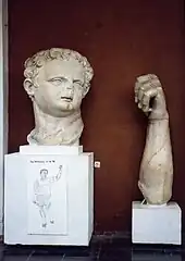 Outre les portraits en buste d'Auguste et de son épouse Livie, une tête monumentale de Domitien est particulièrement frappante. Avec son avant-bras séparé et quelques autres fragments, elle appartient à une statue qui était dressée près du temple de Domitien, d'une taille d'environ sept mètres. L'autel du temple de Domitien provient du même site. Un autel plus petit présente un taureau sacrificiel et des restes d'armes et d'armures.