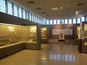 L'antichambre du musée présente l'histoire des fouilles dans la région et la restauration de la stoa du sanctuaire d'Artémis.