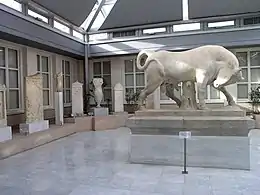 Lion funéraire archaïque de la Porte sacrée, au Céramique, lieu de sa découverte. |