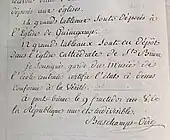 Le premier numéro de cette liste de neuf articles fait référence à « un tableau, cadre doré, représentant l'état de Tancrède après son combat avec Argont[8] ». Il s'agit vraisemblablement du tableau de l'école italienne du XVIIe siècle, que le futur conservateur du musée de Saint-Brieuc Léon Brandt répertorie en 1906 sous le no 69, Vafrin et Herminie découvrant Tancrède blessé, comme provenant de la galerie de Monseigneur de Bellescize, évêque de Saint-Brieuc[9] .