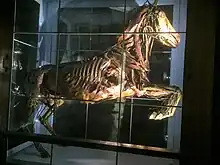 L'une des salles du musée Kosmos avec un squelette de rhinocéros blanc du sud au premier plan. - Requin taupe bleu (Isurus oxyrhynchus) du détroit de Messine, acheté par l'abbé Gaetano Grano en 1790.
