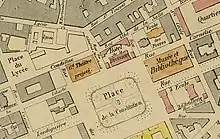 L'emplacement actuel du musée est occupé dès les premières années du XIIIe siècle par le premier couvent de franciscains, souvent appelés en France Frères mineurs ou Cordeliers[170], avant qu'il ne doive se déplacer en 1592, sur l'actuelle place de Bérulle. La grande salle du réfectoire du couvent devient également le site de l'université de Grenoble lorsque le gouverneur du Dauphiné, François Ier de Saint-Pol, la réinstalle à Grenoble le [171]. Mais l'existence de cette université est de courte durée en plein milieu des guerres de religion, puisque après d'interminables requêtes, un arrêt définitif du Conseil royal prononce sa fermeture le au profit de l'université de Valence[172].