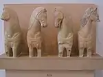 Deux paires de chevaux de style archaïque, certainement éléments d'un quadrige. |
