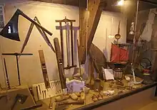Dans la première salle de l'étage du bâtiment, on trouve d'anciens outils de construction navale et des représentations d'époque permettant d'apprécier l'utilité de ces objets.