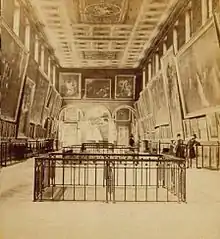 Vue d'une salle de la collection de peintures du Musée des Beaux-Arts avant 1870, photographie d'époque.