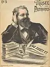 Musée des Patriotes no 1 : Tirez Lâches!!! | [Mi-][24],[9] | Premier numéro du Musée des Patriotes, supplément du Musée des horreurs. Paul Déroulède, alors inculpé de complot devant la Haute Cour, montre sa poitrine à ses accusateurs. Un cadre contient un extrait de la résolution du « parti républicain plébiscitaire », adoptée lors d'une réunion nationaliste le au théâtre de la République[25]. |
