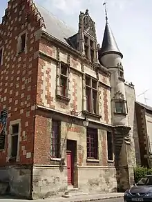 À partir de 1501, l'évêque Charles de Hangest fait construire une nouveau logis, adossé à la vieille tour. La construction, achevée en 1528, porte les armes de la famille de Hangest sur la porte principale. Le bâtiment, de plan barlong, a deux étages, et est flanqué d'une tourelle. Les baies sont très nombreuses, surmontées d'un fronton de style Renaissance, sauf la lucarne du second étage, surmontée d'une dentelle de pierre typique du gothique flamboyant. La frise de feuilles de lierre, d'animaux et de fleurs qui court entre les étages est également sculptée dans une dentelle de pierre de style flamboyant.