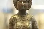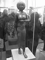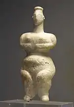 Statuette de terre cuite d'un homme assis, apparemment un dieu de la fertilité. |