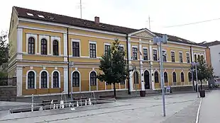 De plan rectangulaire, le bâtiment a été construit en 1873 selon un projet du ministère de la Construction pour accueillir un établissement scolaire ; il s'insérait dans le centre urbain formé au XIXe siècle et abritant tout un ensemble de bâtiments administratifs, judiciaires, éducatifs et religieux[3],[4], comme l'église de la Sainte-Trinité (1823-1824)[5],[6], le konak de Gospodar Vasin (siège du pouvoir administratif entre 1819 et 1821)[7],[8] ou l'administration du district (siège du palais de justice entre 1854 et 1856)[3],[4]. En raison de problèmes administratifs, l'école n'a commencé à fonctionner qu'en 1879[3],[4].
