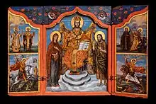 Déisis avec saints, peinture sur bois, triptyque des 18e et 19e siècles, artiste inconnu, au musée national de Serbie.