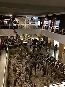 Un moulage monté du spécimen de Tyrannosaurus RTMP 81.6.1 (Black Beauty), au premier étage du musée.